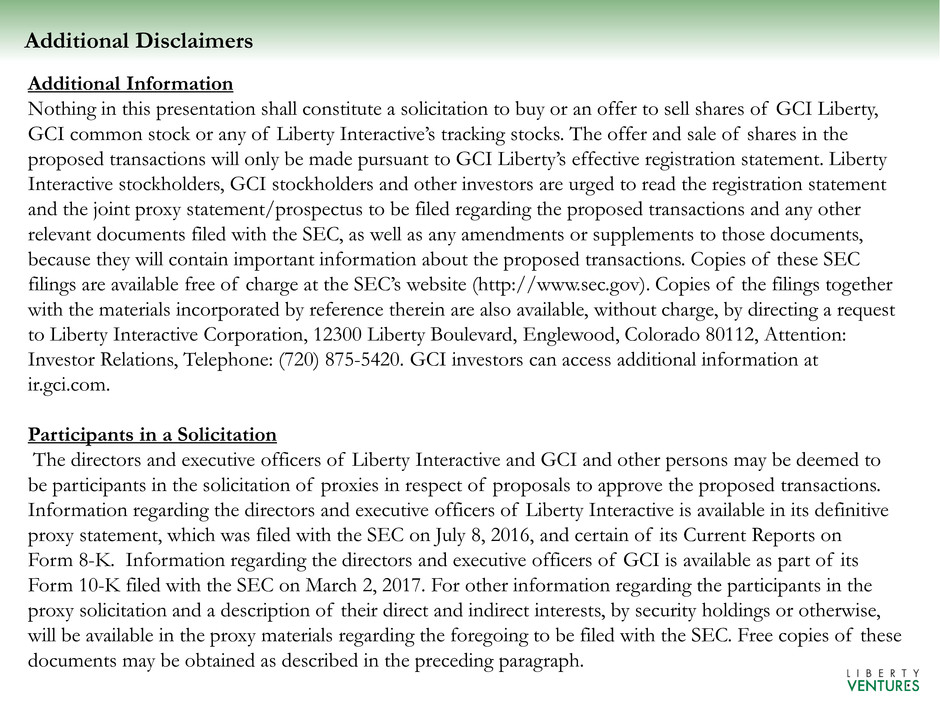 Nothing in this presentation shall constitute a solicitation to buy or an offer to sell shares of GCI Liberty,