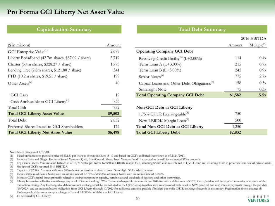 (1) Based on transaction purchase price of $32.50 per share as shown on slides 18-19 and based on GCI’s undiluted share count as of 2/24/2017.
