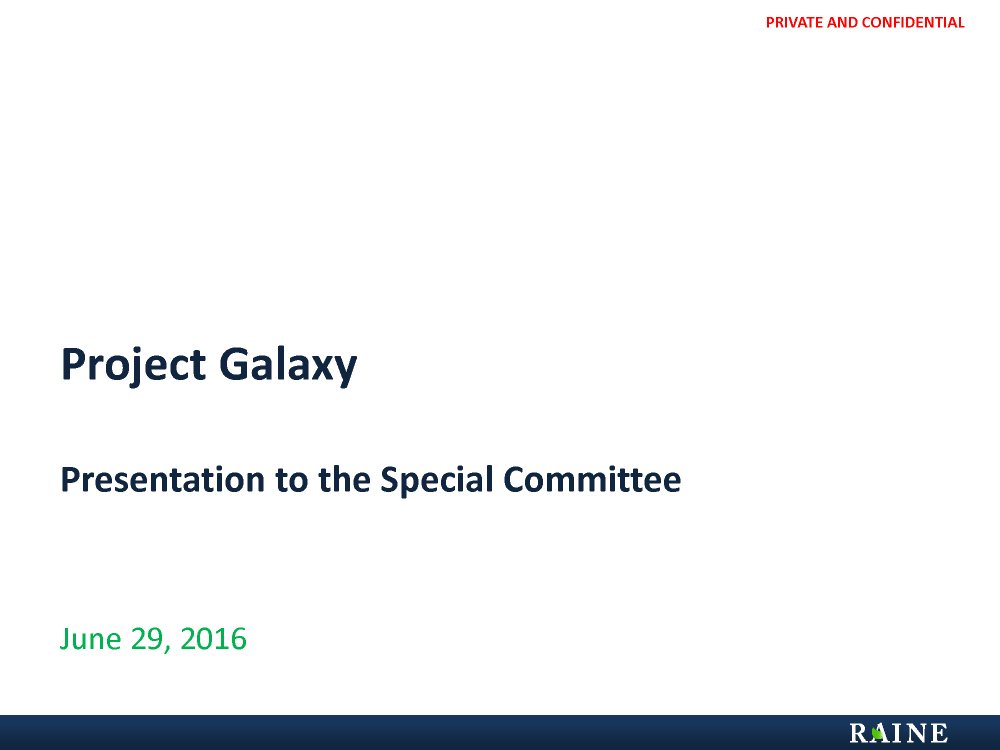 PRIVATE AND CONFIDENTIAL June 29, 2016 Presentation to the Special Committee Project Galaxy