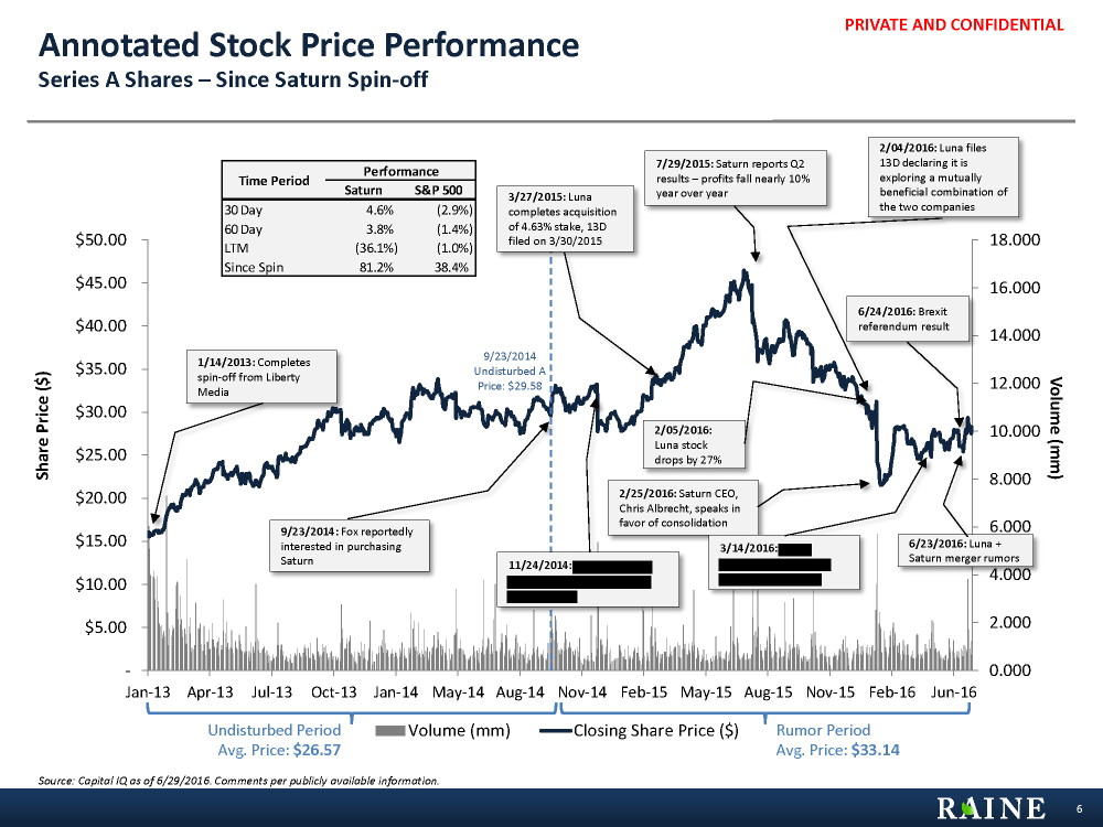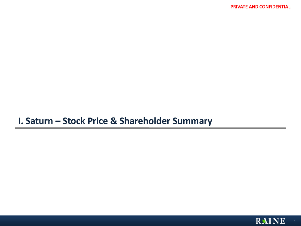 PRIVATE AND CONFIDENTIAL I. Saturn – Stock Price & Shareholder Summary 5