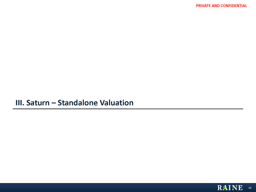 PRIVATE AND CONFIDENTIAL III. Saturn – Standalone Valuation 16