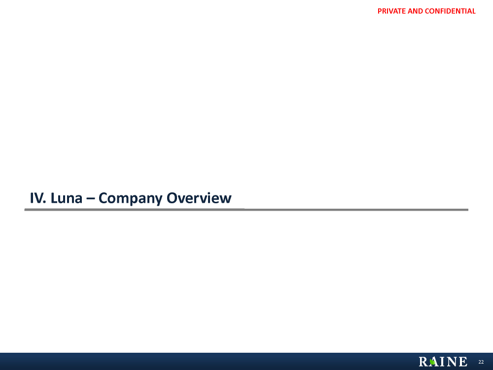 PRIVATE AND CONFIDENTIAL IV. Luna – Company Overview 22