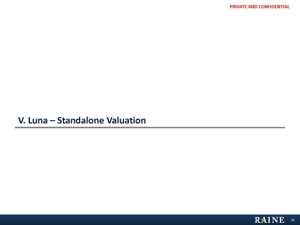 PRIVATE AND CONFIDENTIAL V. Luna – Standalone Valuation 30