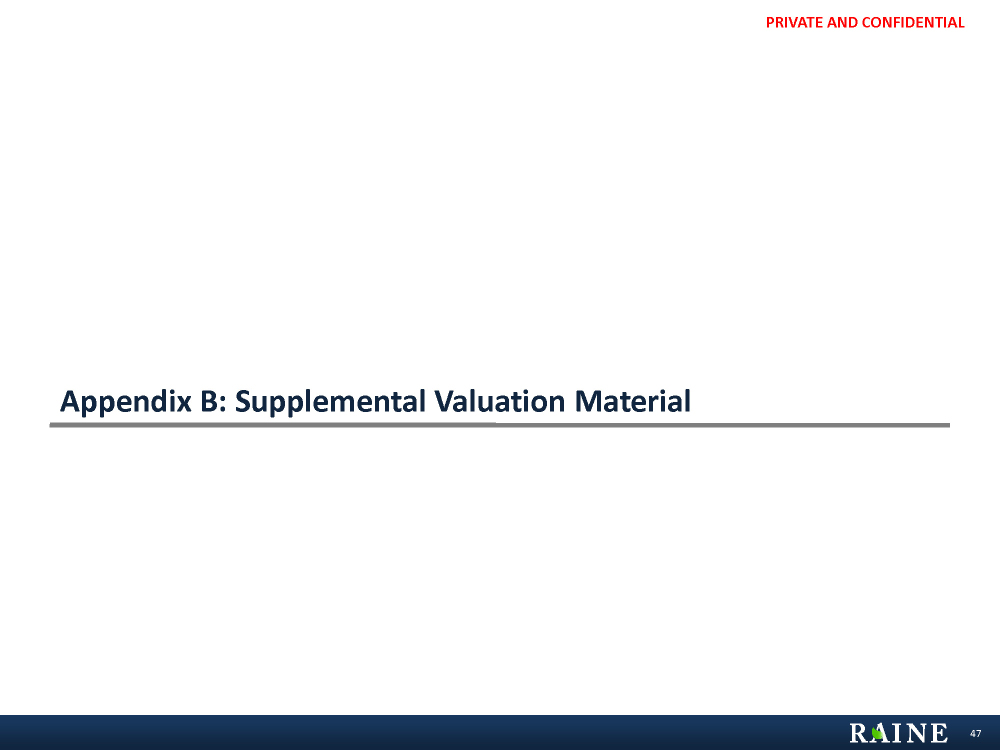 PRIVATE AND CONFIDENTIAL Appendix B: Supplemental Valuation Material 47